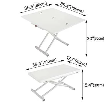 MYSELFLY Living Room Dinning Tables Folding Metal Lift Bracket Multifunction Transform Dinner Kitchen Coffee Tea End Table in Home Wood Desktop Design 40x35 White