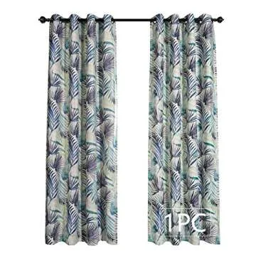 Show more Transform your living space effortlessly with the MYSKY HOME Palm Leaf Fashion Design Print Thermal Insulated Curtains, designed to blend style and functionality. Made from a soft, textured linen-look fabric, these curtains showcase a stunning palm leaf print in tranquil blue hues, making them a perfect addition for those looking to create a serene and tropical ambiance in their home. Measuring 52 x 84 inches, they offer substantial coverage that not only enhances privacy but also acts as a shield against unwanted heat and light.
