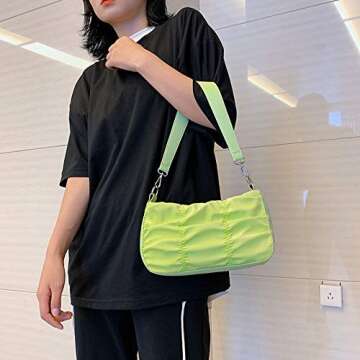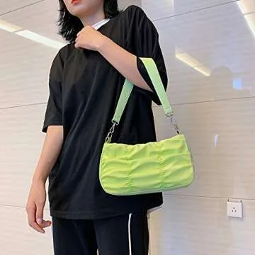 Mysmeir Solid Color Pleated Armpit Bag Oxford Water-resistant Western Style Shoulder Bag for Women (green)