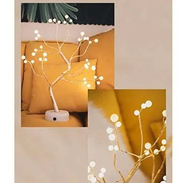 MYSNKU DIY LED Desk Tree Lamp - 36 Pearl Lights for Decor, Battery & USB Powered