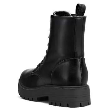Show moreIntroducing the mysoft Women's Combat Boots Platform Chunky Low Heel Lace Up Ankle Booties, where style meets functionality in a perfect blend. These combat boots are not only designed to provide you with optimum comfort and grip but also to elevate your fashion game. Crafted with a durable rubber sole, they feature a robust non-slip construction, ensuring you maintain traction on a variety of terrains. The 1.8-inch heel and 1-inch platform add just the right amount of lift while keeping you grounded and stable, making them perfect for both urban environments and rugged trails.