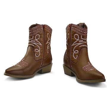 mysoft Women's Fashion Western Cowboy Ankle Boots Short Cowgirl Low Heel Booties