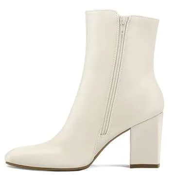 mysoft Women's GoGo Boots Square Toe Side Zipper Ankle Boots Chunky Block Heel Mid Calf Low Heeled Short Booties