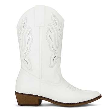 Show moreDiscover the timeless elegance of the mysoft Women's Western Cowboy Boots, expertly crafted to combine stylish aesthetics with everyday comfort. Whether you're hitting the town or heading out on an adventure, these embroidered mid-calf cowboy boots are the perfect addition to your wardrobe. Available in both Regular and Wide Calf sizes, these boots provide a custom fit designed to flatter all leg shapes. With a heel height of 1.5 inches and a platform height of 0.25 inches, they offer just the right amount of lift without sacrificing stability.