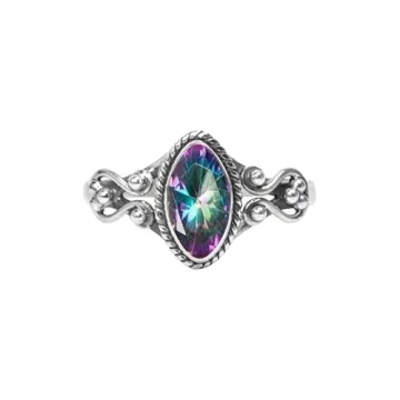 Show more Indulge in the ethereal beauty of our Mystic Topaz Stone Ring, meticulously crafted from 925 sterling silver. This handmade masterpiece features a dazzling 5x10mm marquise-shaped Mystic Topaz, renowned for its vibrant hues that shift with the light. The high-polish finish of the band not only enhances the ring's elegance but also ensures a reflective, luminous quality that celebrates the brilliance of the natural gemstone. Designed to maintain an unobstructed flow of the stone's energy, the ring's unique setting allows the Mystic Topaz to work its metaphysical magic while resting gracefully on your finger.