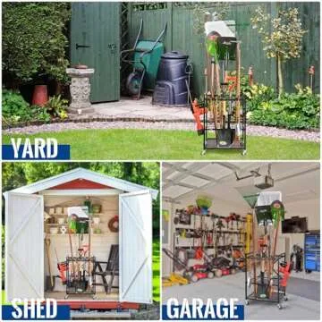 Mythinglogic Garden Yard Tool Organizer for Garage with Wheels, Yard Tool Racks Garage Organizers and Storage,Tool Holder for Garage Yard Shed, Garden Tool Stand
