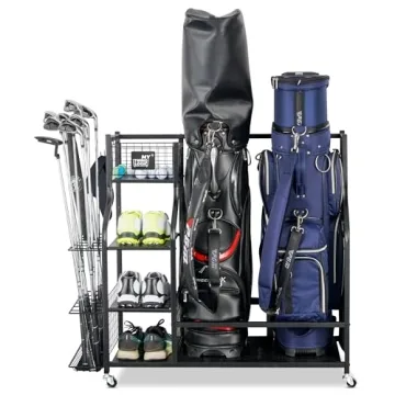 The Mythinglogic Golf Storage Organizer is designed to hold multiple golf bags and a variety of accessories, ensuring it can handle the weight of your equipment securely.