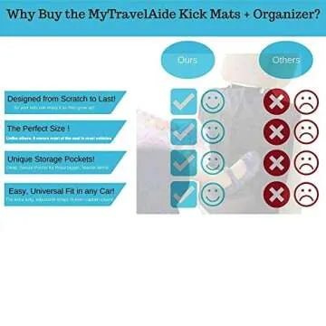 The extra-long, adjustable straps come equipped with quick-release buckles for a universal fit in any car, making installation a breeze. Regardless of the size of your vehicle or its interior design, the Kick Mat organizers fit perfectly, appearing as though they were custom-made for your space. Enjoy peace of mind knowing that the back of your seats is protected against dirty shoes, toys, and spills, fostering a cleaner environment for both adults and children.