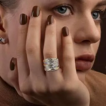 Mytys 2 Tone Intertwined Crossover Statement Ring Fashion Chunky Band Rings for Women Black Gold Silver Rose Gold Plated Wide Index Finger Rings Costume Jewelry (Gold and Silver Size 8)