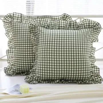 Mywinlle Sage Green Plaid Ruffle Throw Pillow Covers for Couch 20"x20",2 Pack Vintage Checkered Washed Cotton Pillow Cases for Bed, Sofa, Living Room