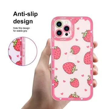 MZELQ Compatible with iPhone 13 Pro Max Case Pink Strawberry Cute Pattern Soft TPU Case for Girls Women + 1* Screen Protector, Camera Hole Protective Phone Case