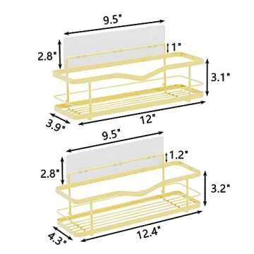 MZF 2-Pack Shower Caddy, No Drilling Adhesive Shower Shelf, Rustproof Stainless Steel Bathroom Shower Organizer Storage, Shower Shelf for Inside Shower & Kitchen Storage, Gold