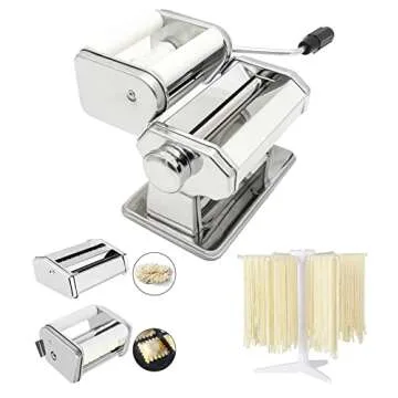 MZTOGR Pasta Maker Machine, Set of 6 Piece 150mm Steel Noodle Maker Machine with 9 Adjustable Thickness Settings, Includes Ravioli Maker Attachment, Pasta Drying Rack (MZ-150PR)