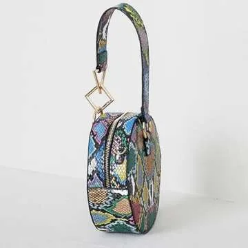 N++A Girls Womens Leopard Snake Print Fur Leather Round Square Crossbody Bag (B Snake Print) Medium