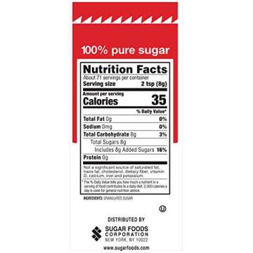 Show moreIntroducing the N'Joy Sugar Canister | 20 Ounce, Pack of 6 – your ultimate companion for sweetening your life! Crafted with care, each canister is filled with 100% pure granulated sugar, ensuring the highest quality for your culinary creations. Whether you’re enhancing a cup of coffee at home, whipping up desserts in the kitchen, or adding sweetness at your favorite restaurant, our sugar canisters are designed for convenience and versatility. The easy pour lid allows for precise control, letting you use just the right amount of sugar every time.