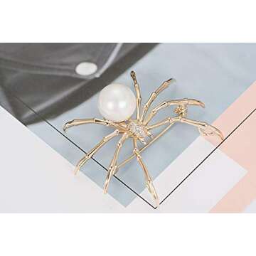 N/P TRX-C Pearl Animal Spider Brooch Gothic Jewelry Halloween Pin Accessories (Gold Tone)
