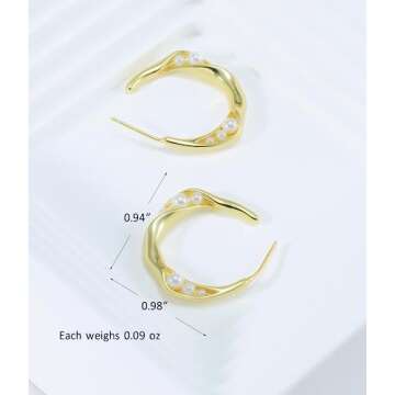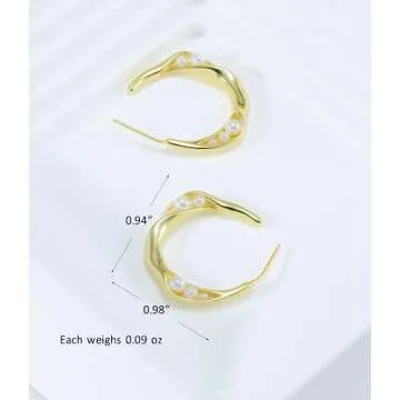 N9NEMUSES 14K Gold Plated Sterling Silver Twisted Channel Set Freshwater Cultured Pearl Hoop Earrings for Women