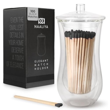 The Naaliya match holder set is complete with everything you need: a chic double wall glass cup, a protective lid, and an impressive supply of 100 high-quality long matches measuring 4 inches. Long enough to reach into the deepest jars with ease, these matches are a game changer for lighting candles, whether at home or during gatherings. Plus, the addition of three striker stickers ensures that you can spark a flame just when you need it, bringing sophistication to every moment.