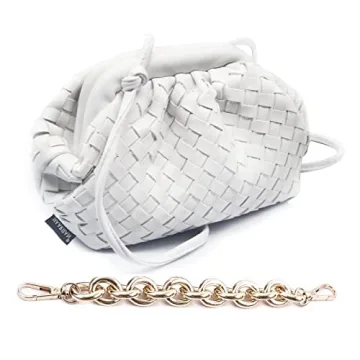 NAARIIAN Trendy Dumpling Ruched Clutch Cloud Shape Dupe Chunky Chain Shoulder Bag PU Leather Woven Handbag(White S)