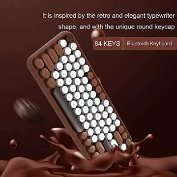 Show more The Fashion & Retro Bluetooth Keyboard by Ajazz beautifully combines vintage charm with essential modern functionality. This exquisite wireless keyboard features a delightful typewriter aesthetic designed to make working more enjoyable, whether in the office or at home. Its cute chocolate color round keycaps add a whimsical touch, enhancing any workspace.