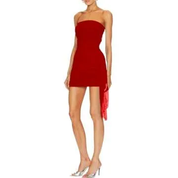 NADIA FRACA Women's Sexy Mesh Strapless Off Shoulder Y2k Bodycon Dress Backless Tube Draped Ruched Mini Dress Red