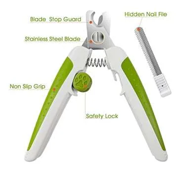 Nado Care Dog Nail Clippers - Pet Nails Trimmer for Dogs or Cats With Safety Guard To Avoid Over-cutting, Free Nail File & Lock Switch, Sturdy Non-Slip Handles