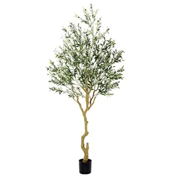 Show moreTransform your living space into a serene oasis with the Nafresh Tall Faux Olive Tree, expertly crafted to enhance any room's atmosphere. Standing majestically at 8 feet, this lifelike potted artificial olive tree showcases detailed silk leaves that mimic the rich greenery of a natural olive tree. It’s designed to impart a sense of peace, hope, and luck—perfect for anyone looking to add a touch of nature-inspired decor. Ideal for the living room, bedroom, dining area, or even an office, its elegance will elevate any space, providing both aesthetic delight and a calming presence.