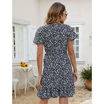 Naggoo Floral Dress for Women - Summer Wrap V Neck Ruffle Short Floral Dress