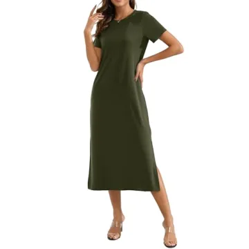 Naggoo Women's Short Sleeve Split Maxi Dress Casual Plain Tie Dye Print Tshirt Long Dresses with Pockets