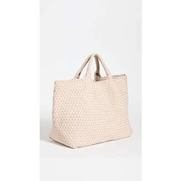 Show moreEmbrace a blend of style and functionality with the Naghedi Women's St Barths Large Tote in a stunning Ecru, Off White hue. Crafted from durable woven neoprene, this tote is not just about looks – it's designed to withstand the rigors of everyday life while keeping your essentials securely in place. The structured base ensures that the bag maintains its shape as you go about your day, making it an incredibly practical choice. Featuring a zip pouch, it's perfect for organizing smaller items, ensuring that your belongings are always accessible.