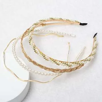 Each headband in this set boasts a unique design while maintaining a consistent level of quality. The various sizes cater to different preferences: the metal thin headband is 0.3cm (0.12 inches), the solid headband 2cm (0.79 inches), pearl beaded headband 0.8cm (0.31 inches), and the faux pearl headbands are 6mm (0.24 inches). This variety means you'll always find the right accessory to suit your mood and style—perfect for both casual wear and formal gatherings. Moreover, the khaki plastic headbands and gold braided hair bands offer a beautiful blend of fun and sophistication.