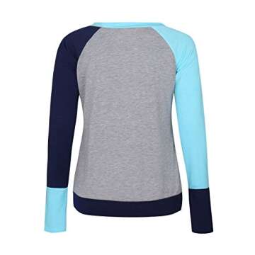 Naier Casual Womens Tops Leggings Rglan Long Sleeve Sweatshirt Color Block T-Shirts Light Blue M