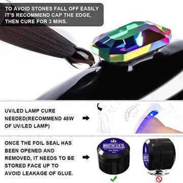 Nail Art 8ml×2 NO WIPE Rhinestone Glue Gel Kit(LED Light Cure Needed) Adhesive Resin Gem Stone Jewelry Beads Diamond Gel Nail Polish Clear Decoration With Nail Rhinestones(Crystal+Acrylic+Rivet)+tools