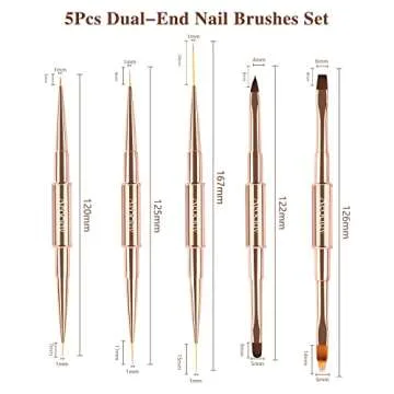 Nail Art Brushes Nail Design Brushes Set Double-Ended 5pcs Nail Brushes Nail Art Tools Nail Liner Brush 3D Nail Art Decorations for Acrylic Application Professional for Nail Tech and Beginner