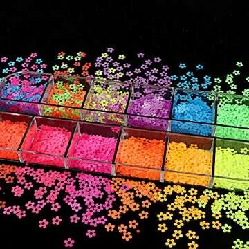 Nail Art Decals 12 Colors Fluorescent Flower Style Nail Glitter Sequins 3D Nails Art Stickers Manicure Fluorescent Flower Sequins Decoration Decals Supplies, Nail Art Flake Acrylic for Women