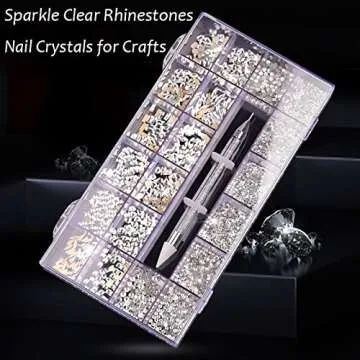 Nail Art Decorations AB Rhinestones Kit DIY Crafts Gemstones for Nail, Shoes, Clothes, Jewels (600 Clear diamonds + 2500 flat rhinestones)