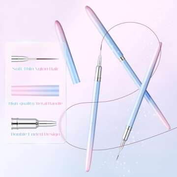 Nail Art Liner Brushes - Eptbsdu 5PC Nail Art Brush for Long Lines, Liner Brush UV Gel Polish Painting Nail Design Brush Metal Handle Nail Drawing Pens, Sizes 7/9/11/15/25mm