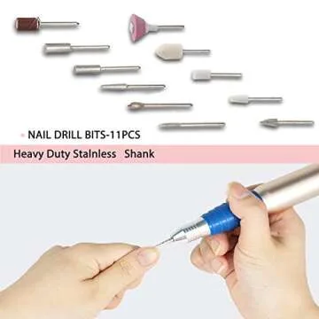 Show moreIntroducing the Nail Drill - Professional Nail Drill Machine, your ultimate companion for achieving salon-quality nails right from the comfort of your home! Engineered to offer precision and efficiency, this electric nail drill reaches an impressive speed of 25000 RPM, making it perfect for acrylic and gel nails. With its lightweight design and ergonomic handle, you can effortlessly glide through manicures and pedicures, transforming your nail care routine into a pleasurable experience. The kit includes 11 high-quality nail drill bits and sanding bands designed for various tasks—whether you need to file, shape, or buff your nails, this versatile machine has you covered.