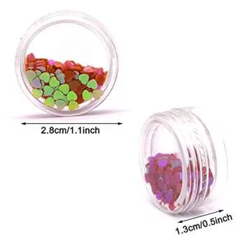 Show more Introducing the ultimate in nail artistry with MiMiLai’s Nail Glitter 12 Boxes Heart Nail Art Flakes. These adorable and vibrant heart-shaped flakes come in 12 stunning colors, designed to elevate your manicure game and make your nails the talk of the town! Made from non-toxic Polypheylene Ether and stunning foil, these glitters are odorless, durable, and safe for all types of use, including face and body application. Whether you’re preparing for a festival, party, or simply want to unleash your creativity, these nail art flakes offer versatility and style that’s hard to beat.