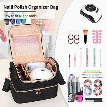Nail Polish Organizer Case, Nail Organizers And Storage Bag Holds 45 Bottles Nail Polish & Nail Lamp, Travel Nail Supplies Organizer Carrying Case with Nail Tech Kit & Manicure Tools Storage Sections