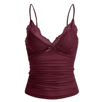 Show moreDiscover the enchanting world of Y2K fashion with the Naileksi Women Y2K Lace Trim Cami Top. This beautifully crafted spaghetti strap tank top is designed for the modern e-girl and offers the perfect blend of comfort and style. Made from a premium cotton blend, this cami is not only soft and stretchy but also lightweight, breathable, and skin-friendly for your all-day comfort. The stunning lace patchwork and ruched details create an effortlessly chic aesthetic that celebrates the playful essence of fairy grunge style. Whether you're dressing up for a casual outing or enjoying a laid-back day, this cami top will elevate your look effortlessly.