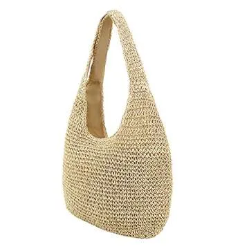 Naimo Women Straw Beach Shoulder Bag Woven Tote Handbag Large Handmade Weaving Summer Casual Hobo Bag