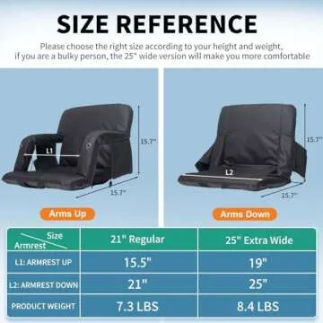 NAIZEA Heated Stadium Seat for Bleachers - 6 Reclining Positions & Arm Support