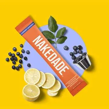 Show more Introducing Nakedade Blueberry Lemonade, your ultimate performance-enhancing sports drink powder designed to fuel your workouts and hydration needs effortlessly. Each convenient packet is packed with essential electrolytes and smart carbs, including Palatinose™—a unique carbohydrate derived from sugar beets that ensures sustained energy without the dreaded sugar crash. This delicious blueberry lemonade flavor transforms hydration into a refreshing experience, making it the perfect companion for gym enthusiasts and outdoor adventurers alike.