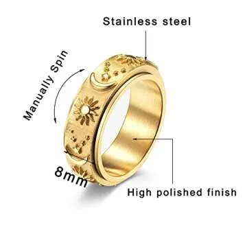 Nanafast Stainless Steel Spinner Ring for Anxiety Relief with Sun Moon Stars