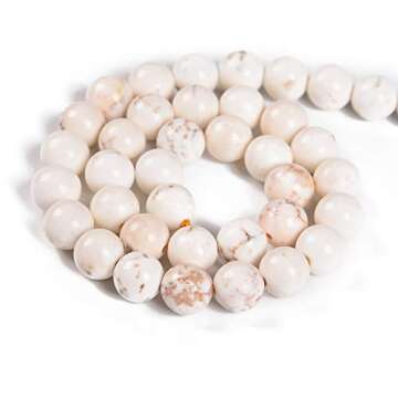Show more Unlock your creativity with the exquisite Nancybeads 60pcs 6mm Natural Stabilized White Turquoise Gemstone Round Spacer Loose Stone Beads. Crafted from 5A grade natural stones, these stunning turquoise beads stand out with their highly polished surface, exuding elegance and charm. Each bead, unique in texture, showcases the beauty of genuine gemstones, making them perfect for any jewelry-making project. Whether you're designing necklaces, bracelets, or earrings, these versatile beads will elevate your creations, infusing them with a touch of natural beauty.