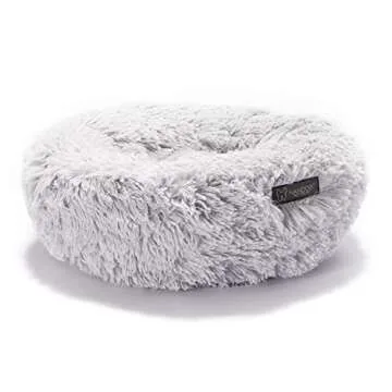 NANDOG Pet Gear Calming Round Shaggy Pet Bed for Dogs and Cats (Small, Light Gray)
