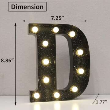 NANXU LED Black Letter Lights 26 Alphabet,Small Black Lighted Letters,Black Light Up Letters,Battery Powered Glitter Alphabet Letter Lights for Night Light Party Table Wall Decor,Black Letter D