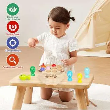 NAODONGLI Wooden Magnetic Fishing Game for Toddlers 1-3,Montessori Preschool Education Activities Fishing Toys Learning Fine Motor Skills Best Birthday Gift for 3 4 5 Year Old Boys Girls