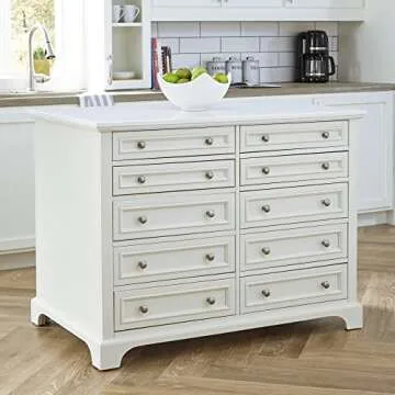 Show moreElevate your closet organization with the Naples White Closet/Storage Island by Home Styles. Designed to seamlessly blend functionality and aesthetics, this stunning storage island features a sleek white body, complemented by a striking marble top that enhances any space. With dimensions of W-48", D-30 ½", and H-36", it offers ample storage while adding a touch of elegance to your home. The island's mixed material construction ensures durability and longevity, making it a worthwhile investment for your closet space. The unique design provides not only a beautiful focal point but also the practical storage solution you have been searching for.